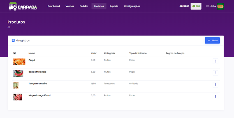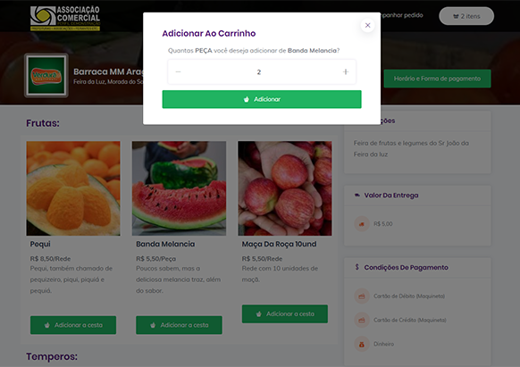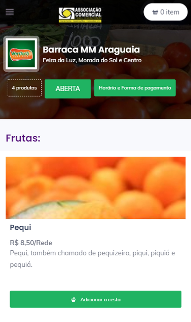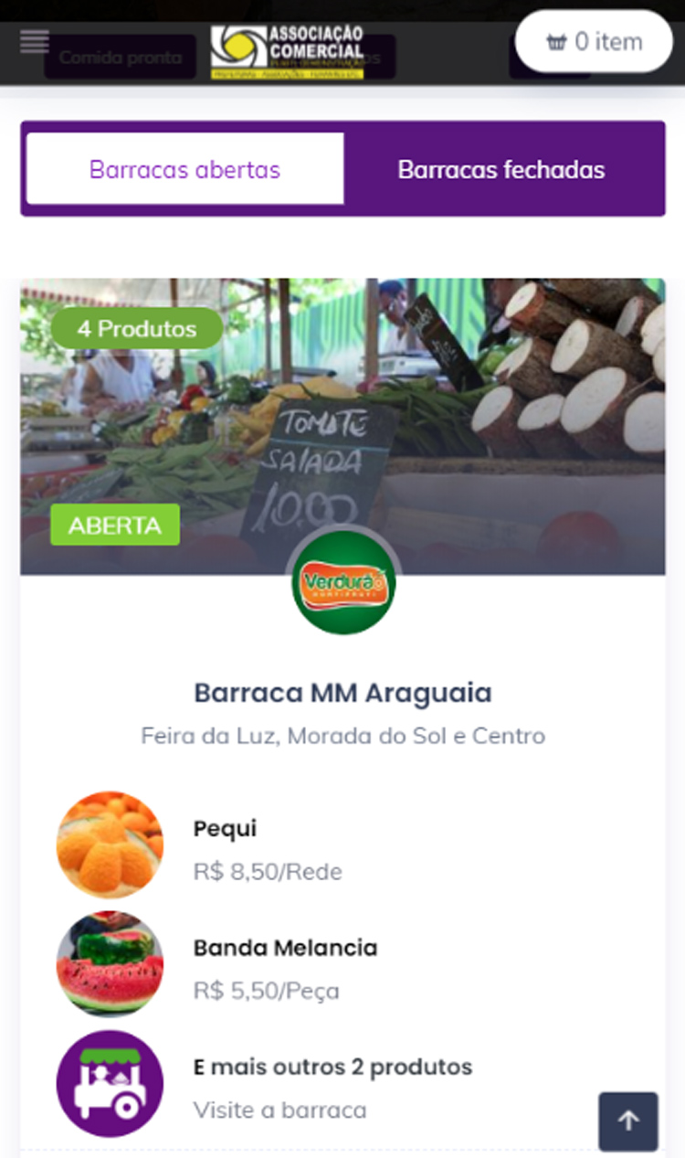 - Visualização de barracas/lojas na plataforma - On-line e Off-line;